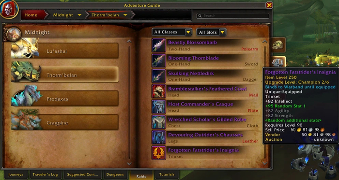 Как и все мировые боссы Midnight, Торм'белан гарантированно дропает связанную с боевым отрядом экипировку чемпионского уровня с 250-м уровнем предмета. Экипироваться в Midnight относительно легко, но всё же стоит победить Торм'белана, чтобы легко раздобыть немного экипировки для своих альтов.