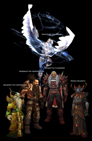 После того, как один из врайкулов умрет, он вскоре возрождается духом с теми же самыми способностями, что и до смерти. Борьба закончится лишь тогда, когда оба босса падут. Небольшое преимущество вы получите, если убьёте сначала Далронна, так как он атакует только Стрелой Тьмы. Его дебафф «Ослабление», конечно, сильно мешает, но против него ничего нельзя предпринять. Когда Далронн умирает, он возрождается как дух, и продолжает посылать Стрелы Тьмы на группу. Теперь вы переключаетесь на Скарвальда, который всё это время был занят «переговорами» с танком. Изредка он налетает на случайного игрока. Этого можно избежать, если все встанут на расстояние его ближнего боя. Это не создаст никаких трудностей, так как он не владеет способностями повреждения по площади (Аrea effect damage), как Рассекающий удар (Cleave) или Вихрь(Whirlwind) . Порой танка отбрасывает Каменным ударом (Stone Strike), но тогда он просто занимает снова свою старую позицию.