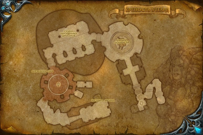 Крепость врайкулов Утгард возвышается посередине Ревущего фьорда. В ее массивных каменных стенах находится первая инстанция в Нордсколе. Так как она была задумана для начинающих, Вам здесь не понадобится никакое особенное снаряжение. Наоборот, новоприбывшие игроки с 70 уровнем смогут добыть себе здесь пару неплохих предметов, которые облегчат дальнейшее прокачивание персонажа. Ваша группа должна состоять из танка, целителя и 3 персонажей, наносящих урон (Damage Dealer). Классы с контролирующими способностями типа Полиморфизм (Polymorph) или Покаяние(Repentance) очень помогают в стычках с большими группами мобов.