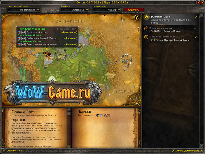 - Есть база данных всех квестов с удобным поиском по локации и уровню