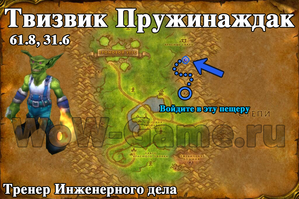 Твизвик Пружинаждак - где располагается тренер Инженерного дела в WoW