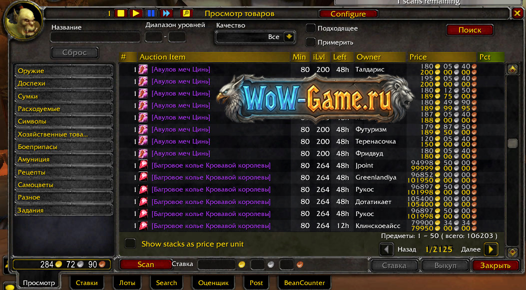 Аддон Auctioneer Suite предоставляет вам инструменты и данные, необходимые для того, чтобы с легкостью принимать сложные решения на аукционе. Многие другие аддоны также используют статистику Auctioneer, которую вы собираетесь посредством сканирования. Это особенно актуально для многих популярных аддонов для крафта.