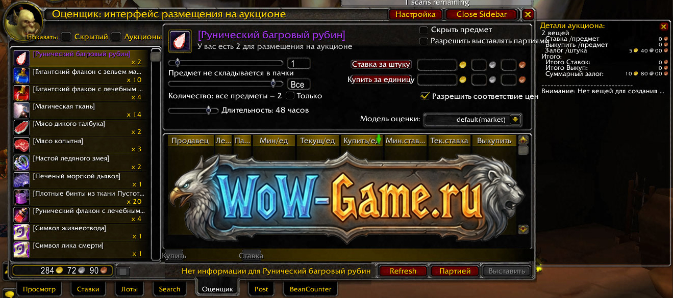 Аддон Auctioneer Suite может помочь вам со временем устранить этот недостаток знаний о рынке, наблюдая за его развитием.