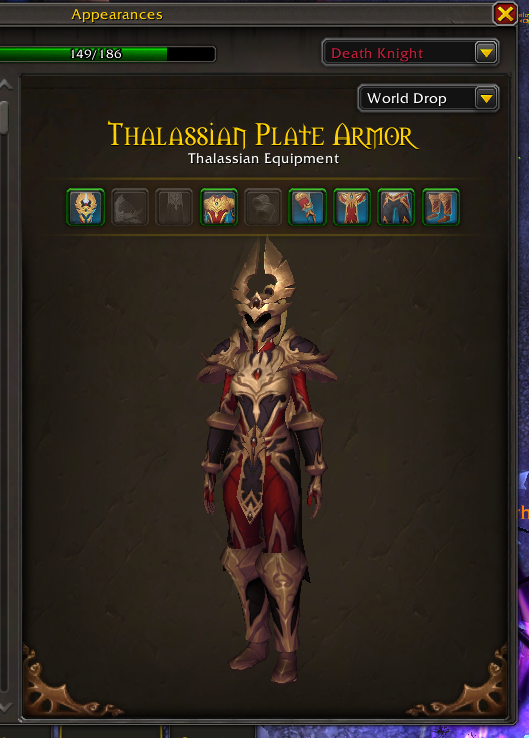 Некоторые серые предметы экипировки, выпадающие с мобов в пре-патче, имеют ту же внешность, что и наборы случайного дропа Талассийского снаряжения.