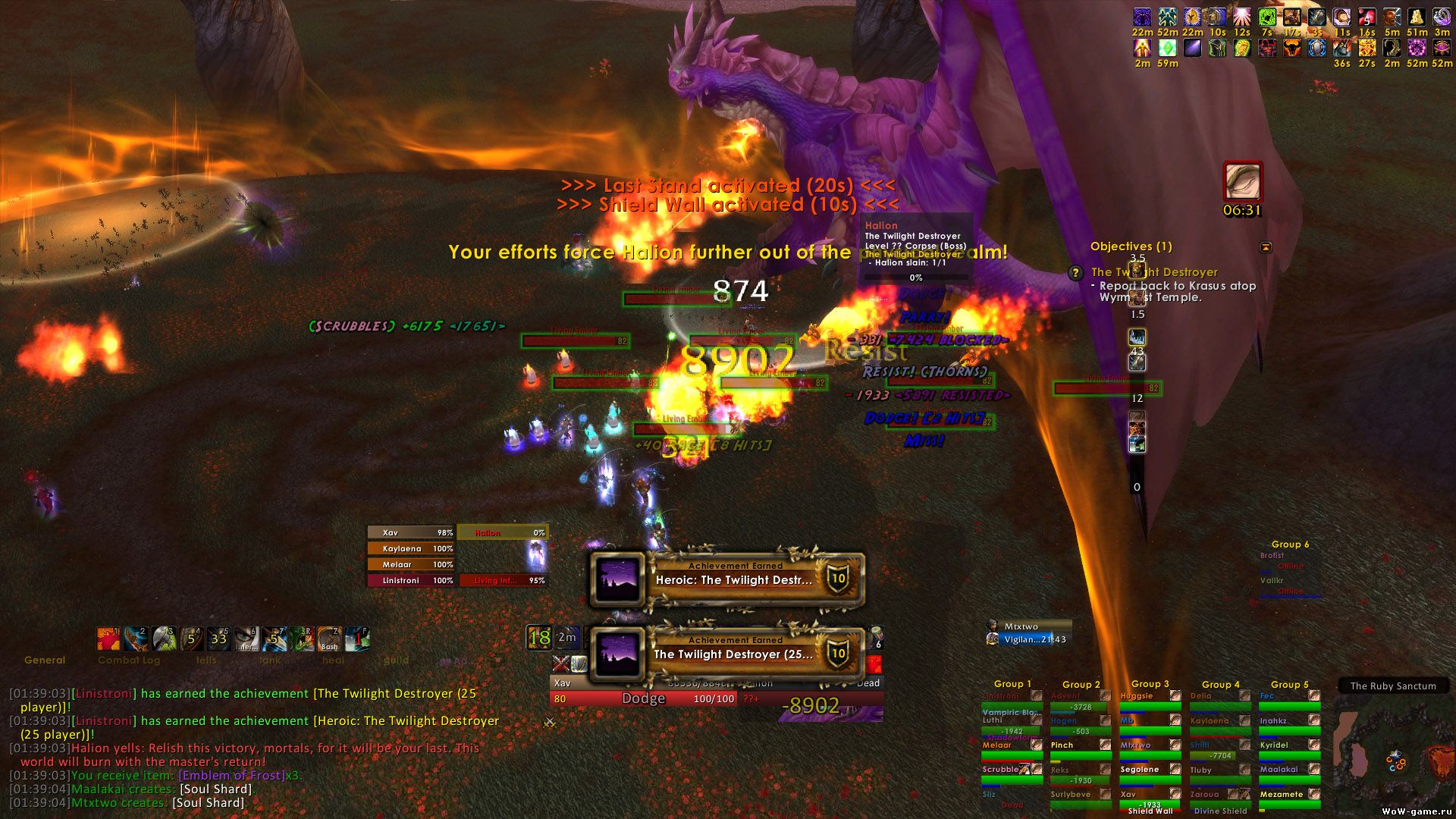 Гильдия Premonition (US - Sen'jin) уже убила главного босса дополнения 3.3.5 - Халиона в 10/25-местном героическом режиме. Также появилось их первое видео битвы в 10-местном режиме.