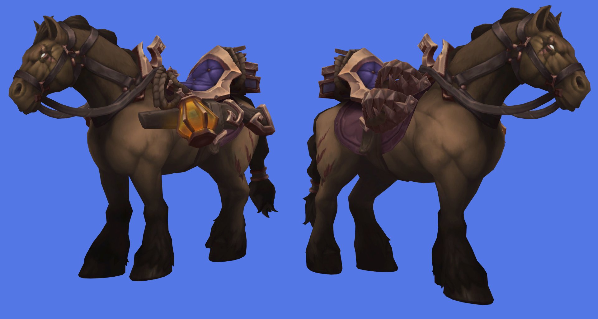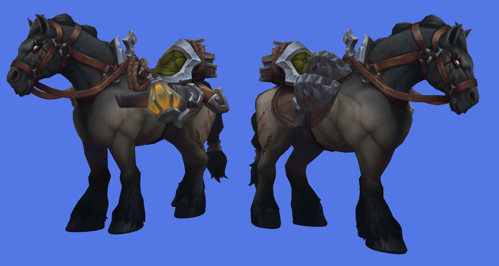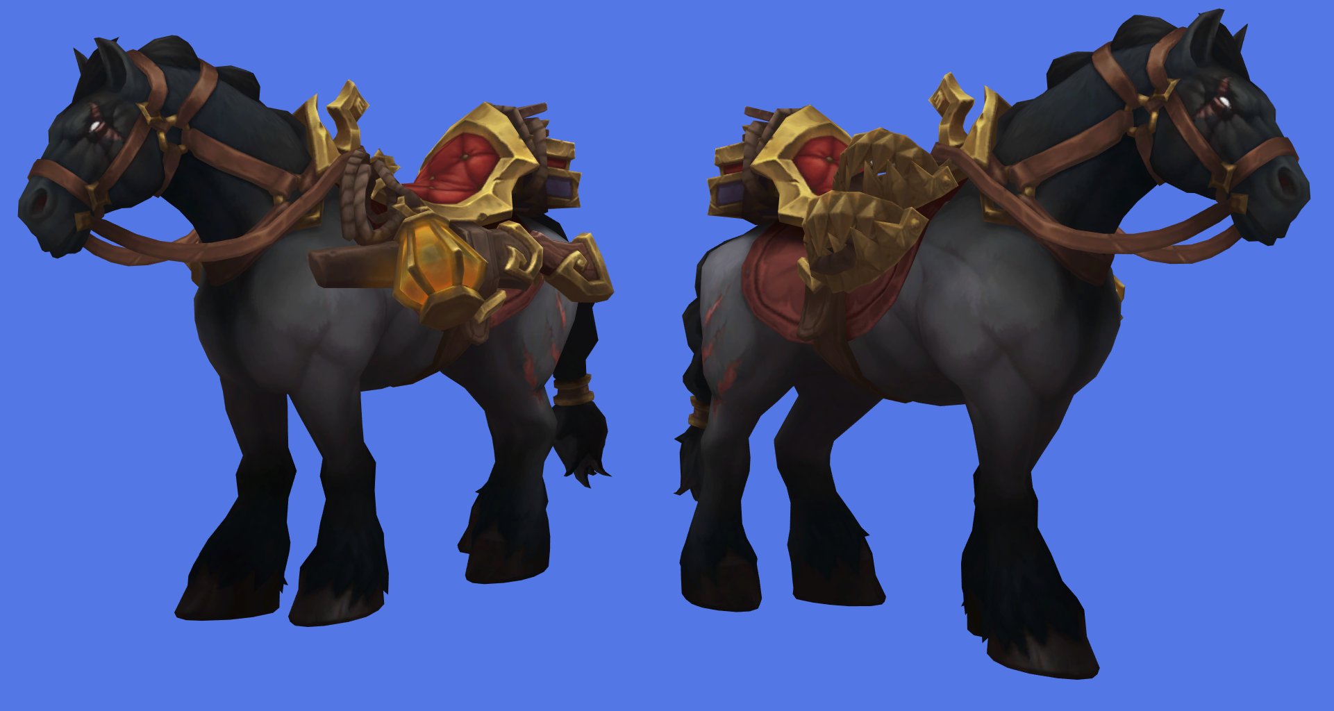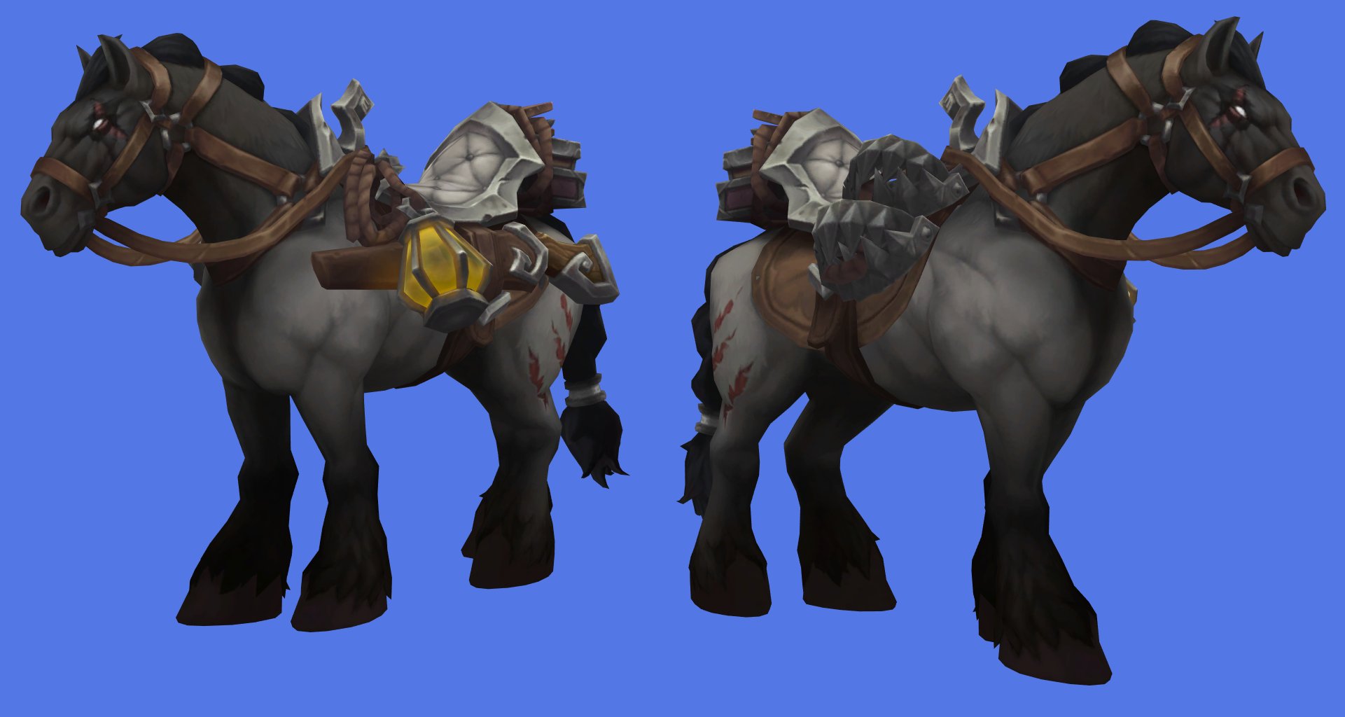 В файлах патча 12.0.5 появились четыре новых маунта-лошади с явной гилнеасской тематикой. Дизайн выполнен в темном стиле Гилнеаса: тяжелая броня и внешний вид, который отлично подходит воргенам или гилнеасским персонажам. Особенно следы от когтей придают каждому из четырех вариантов определенную мрачную, но уместную эстетику.