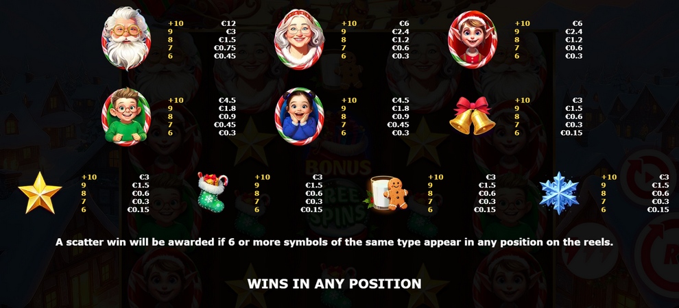 Особая фишка Christmas Wins 2 - это фриспины, которые могут быть активированы как обычными скаттерами, так и особыми бонусными символами. В игре также есть множители, которые могут существенно увеличить размер вашего выигрыша. И чем больше фриспинов вы активируете, тем больше шансов на крупные множители и дополнительные бонусы.